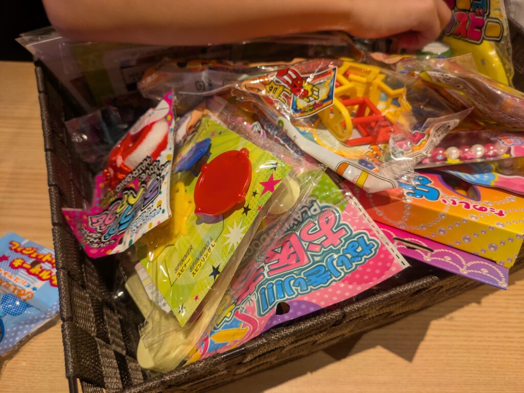 ここから好きなおもちゃを一つもらえるのですが、これをラーメンが届くまで悩みます。