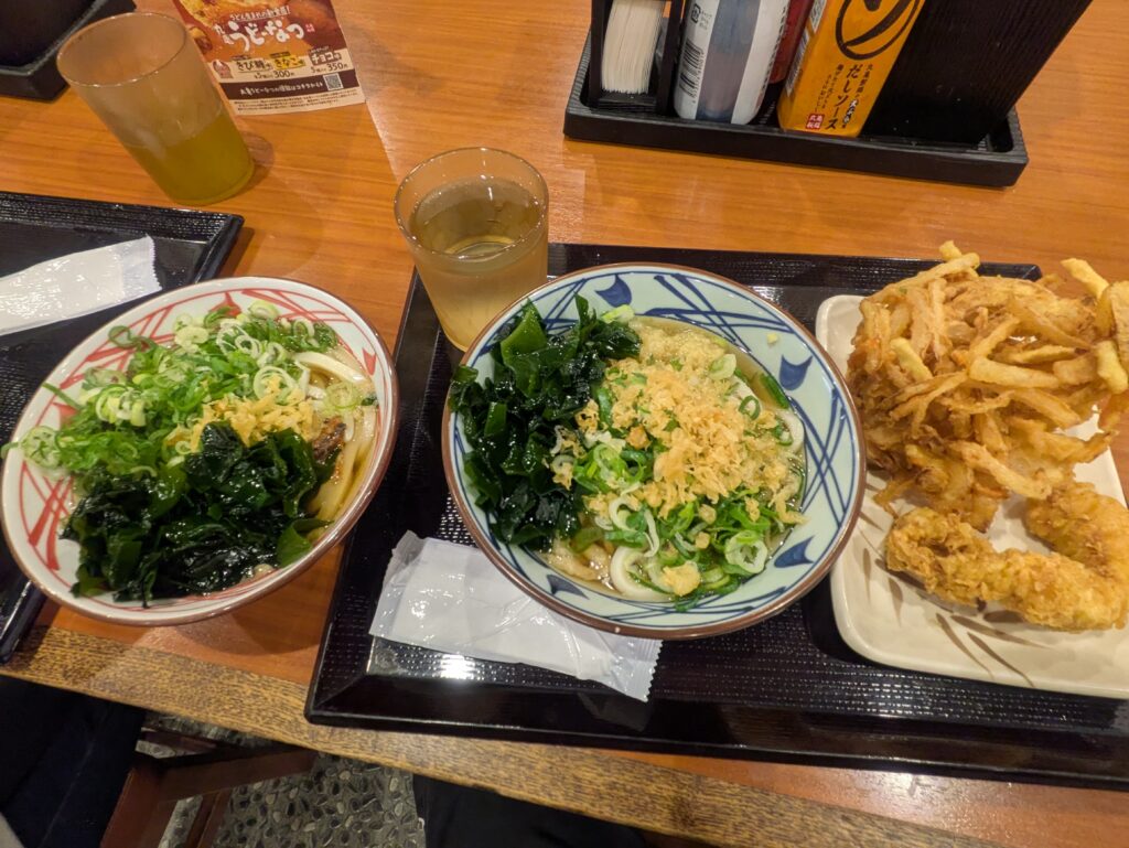 丸亀製麺はかしわ天が美味しいです。かき揚げは食べている途中でやはり脂っこくて半分くらいがちょうどいいなと感じました。次はいなり寿司にしようと思います。