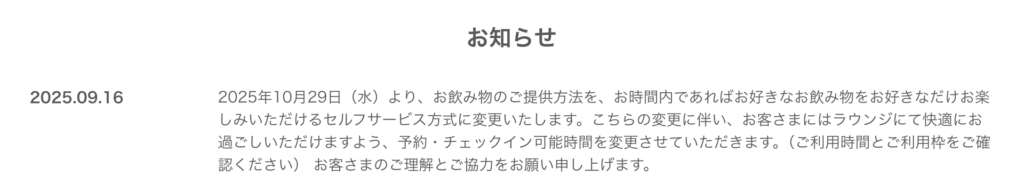 つまり、飲み放題となりました。これはナイス変更ですね。