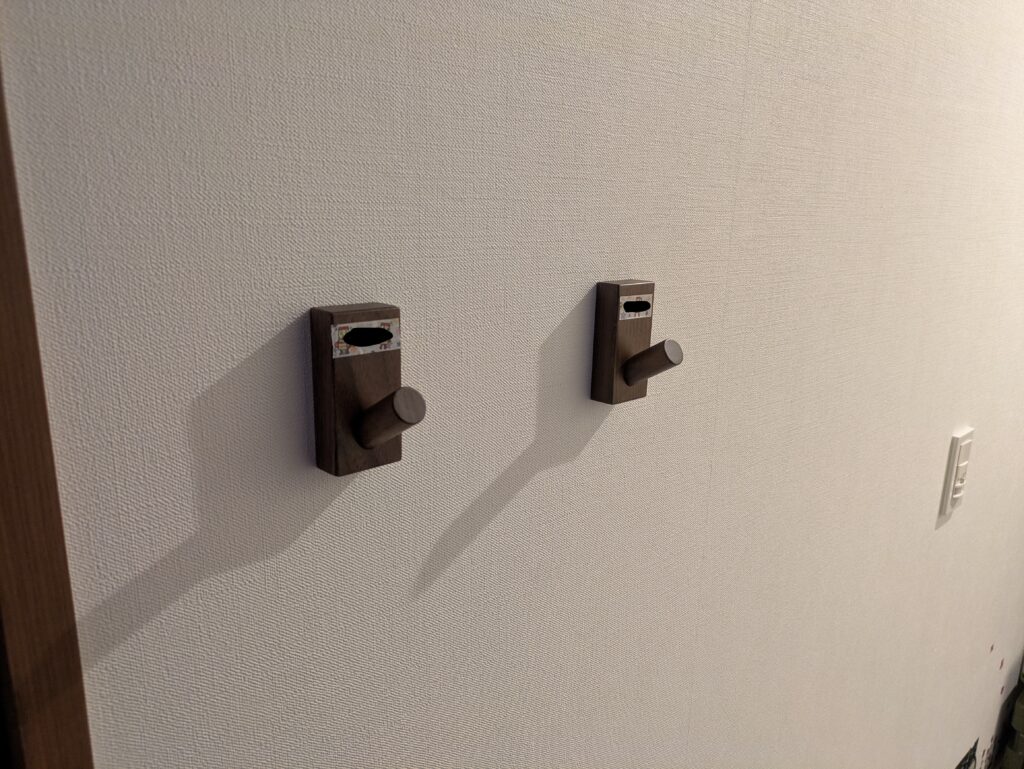 とりあえずフックは玄関の横に設置。