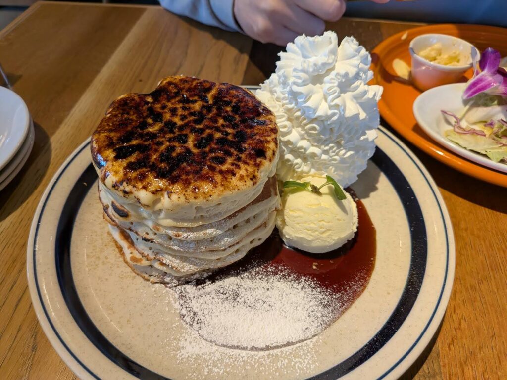 パンケーキもカラメルソースのほろ苦い感じとホイップクリームの甘い感じがパンケーキにとてもあっていて美味しかったです。