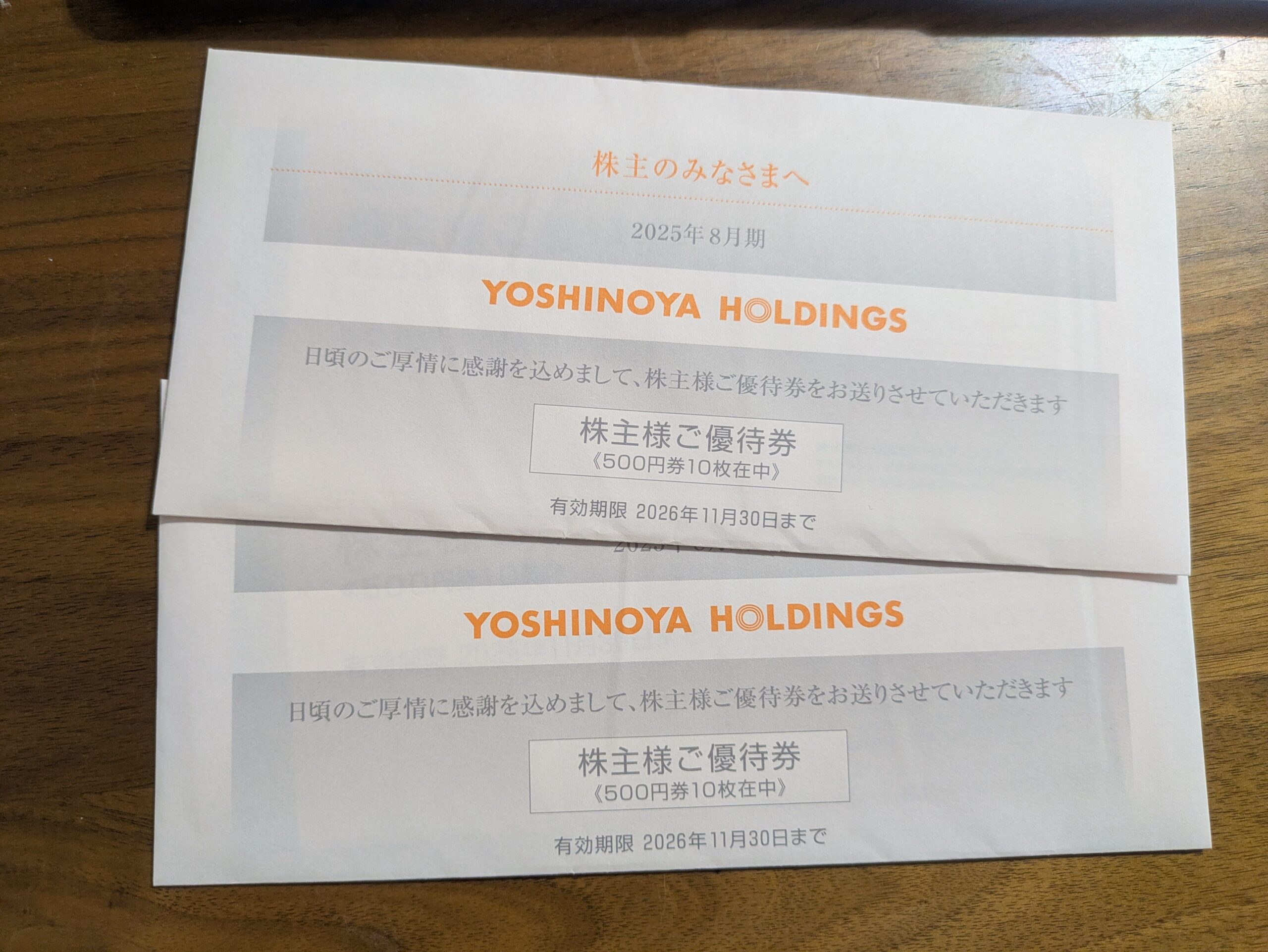 そして、先日吉野家ホールディングスから配当と株主優待が届きました