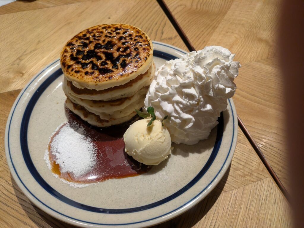 次女はクラシックブリュレパンケーキを注文。先日我々が食べたやつですね。