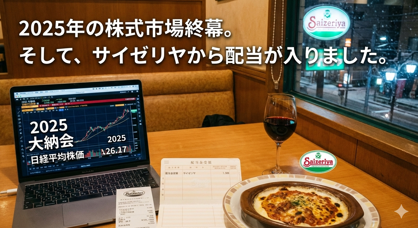 2025年の株式市場終幕。そして、サイゼリヤから配当が入りました。