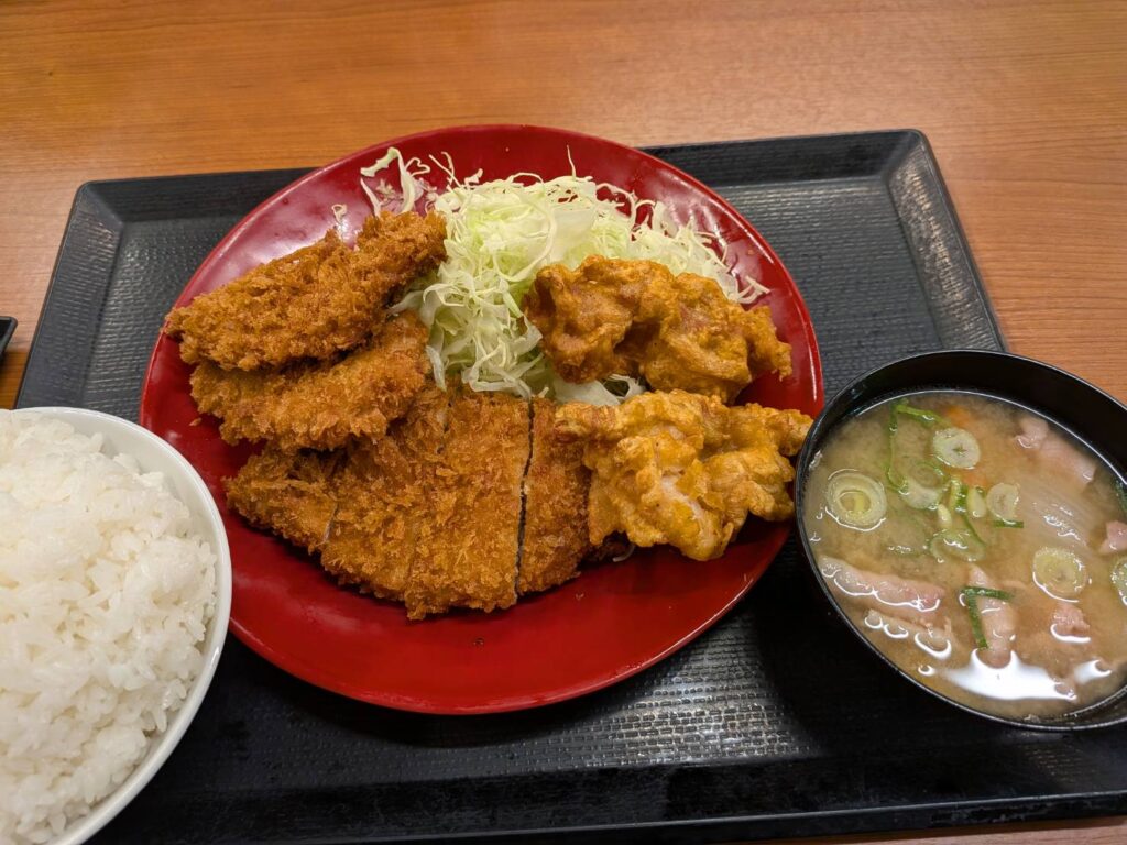妻は次女とシェア用に、ロースカツ唐揚げ定食をご飯大盛りにして注文しました。